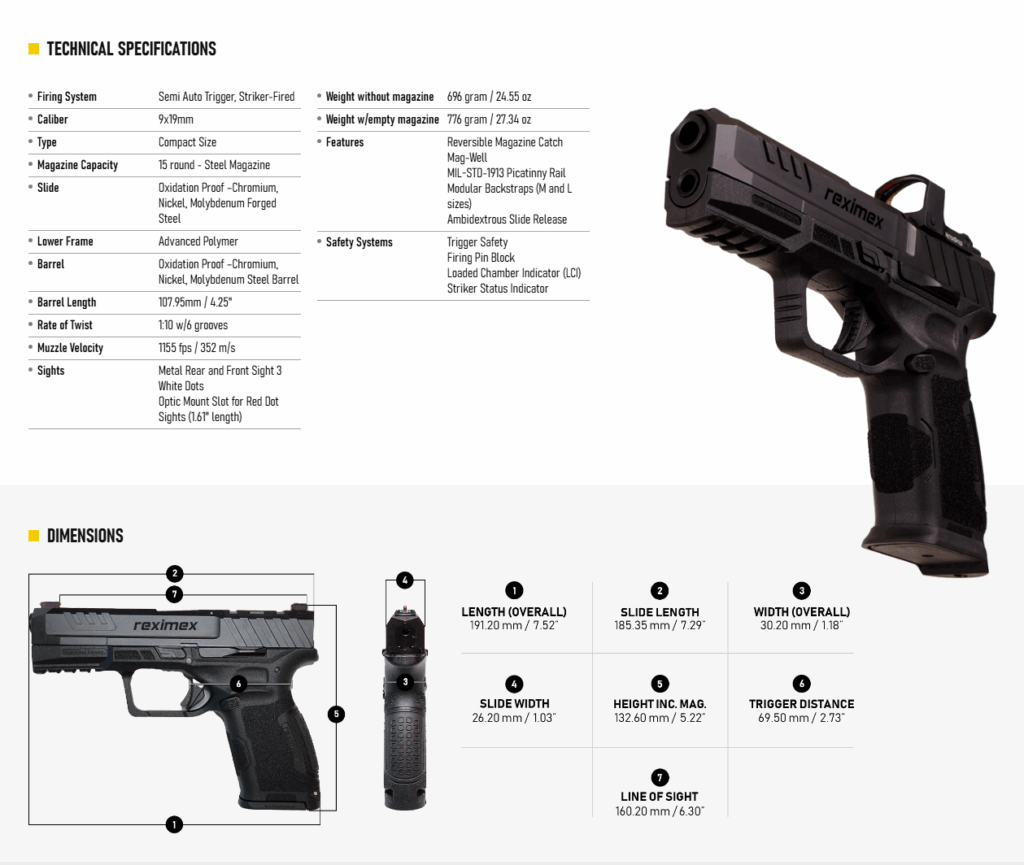 The Reximex TRX 9 semi auto pistol is designed to meet all needs of shooters in a single product. It combines and incorporates all modern and up to date technical characteristics and features. It’s a full-size handgun with all features you may need already built on.